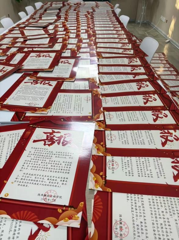 “叮!您有一封来自陕服的荣誉快递,请查收!”近日,一批封装精美的喜报从我校寄出,跨越山海,送到2024-2025学年国家奖学金、国家励志奖学金获奖学子的家中。这份满载骄傲与温情的“专属惊喜”,打破传统校内表彰的局限,将学子的成长荣光与家庭紧密相连,织就一条家校共育的暖心纽带。