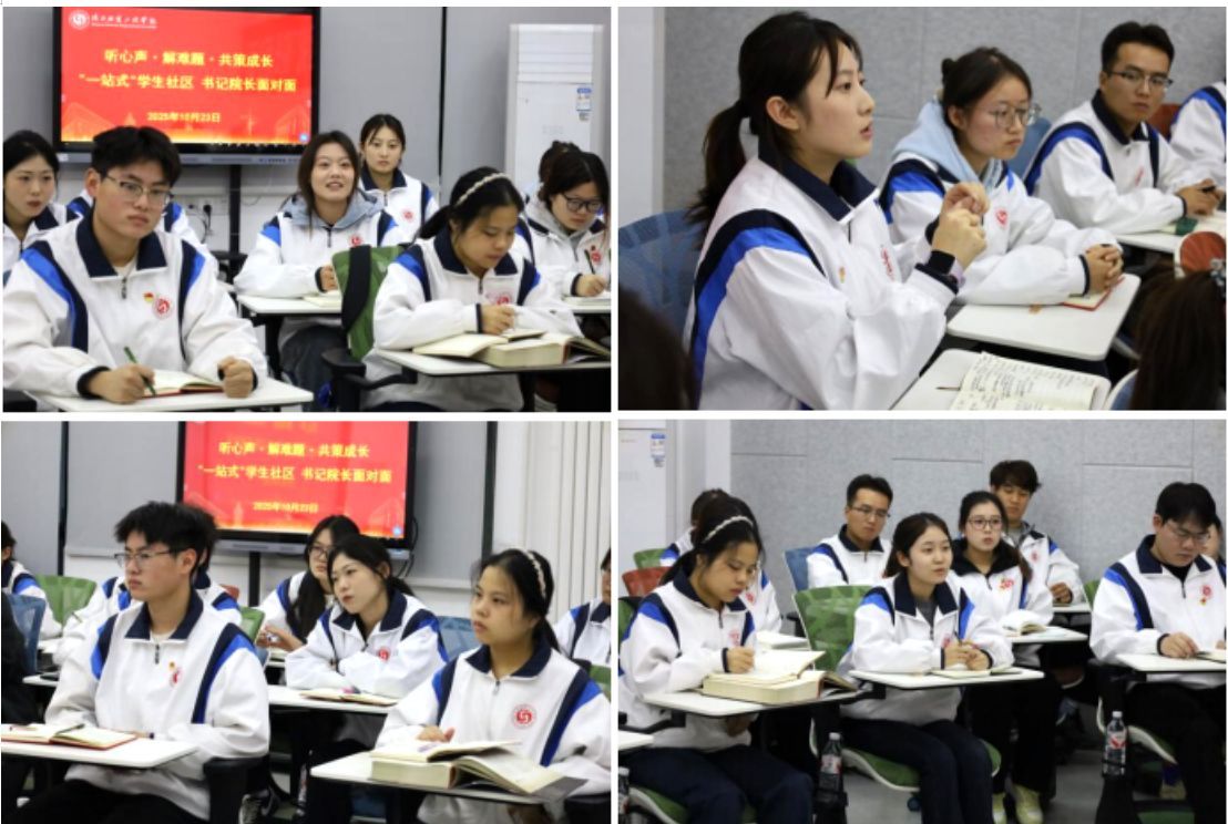 在交流环节,学生代表们结合自身实际,从“理想信念塑造、学业能力提升、教学资源优化、生活服务完善、就业升学规划”五个维度提出了许多具有针对性和建设性的意见。现场气氛活跃,同学们踊跃发言,既有对课程设置、实践教学、后勤保障等方面的具体建议,也有对考研升学、职业发展等方面的困惑求助。各职能部门负责人认真倾听、详细记录,并就相关问题一一回应。能够现场解决的,当场明确解决方案;需要后续推进的,也确定了责任人与办理时限,确保学生关切落到实处。