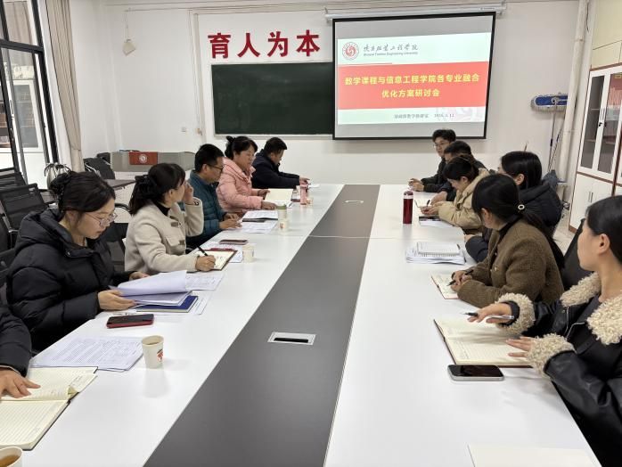 为打破学科壁垒,推动数学基础课程与信息工程类专业课程深度融合,切实提升人才培养质量,3月13日下午,基础部数学教研室与信息工程学院在基础部会议室召开“数学课程与信息工程学院各专业融合优化方案”专题研讨会。基础部副主任王伟、基础部全体数学教师及信息工程学院计算机科学系主任戴静、电子信息系主任潘虹、数据科学系主任樊飞转、机械工程系主任李艳利、工程造价系主任冯俊琪参会,会议由基础部数学教研室主任罗东主持。