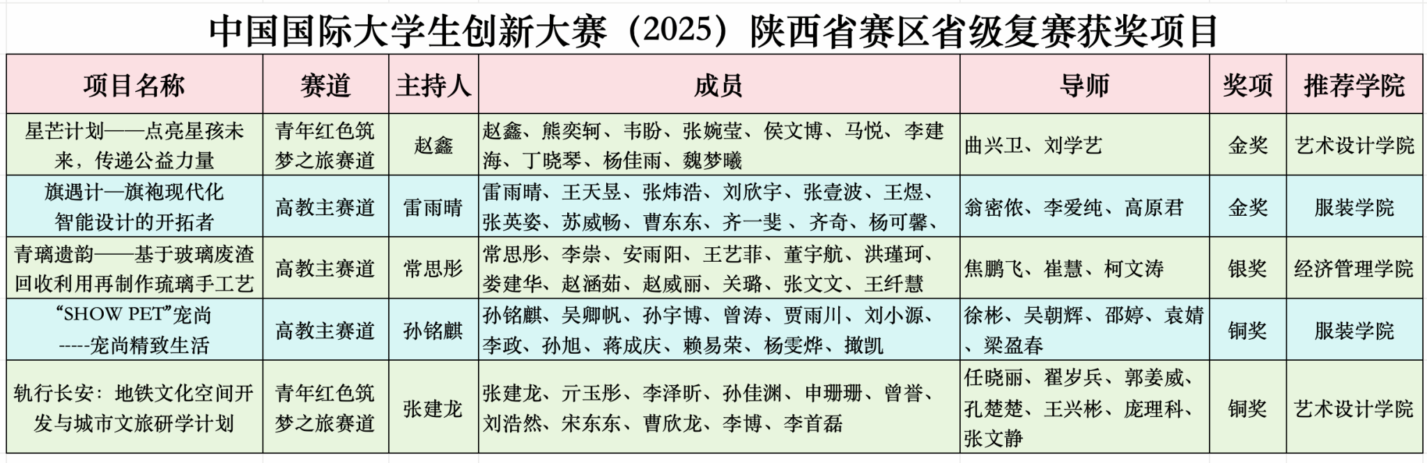 近日,省教育厅对中国国际大学生创新大赛(2025)陕西赛区省级复赛拟获奖项目进行了公示,我校推荐的项目经多轮激烈角逐,最终斩获金奖2项、银奖1项,铜奖2项,实现了项目质量和获奖级别的重要突破。