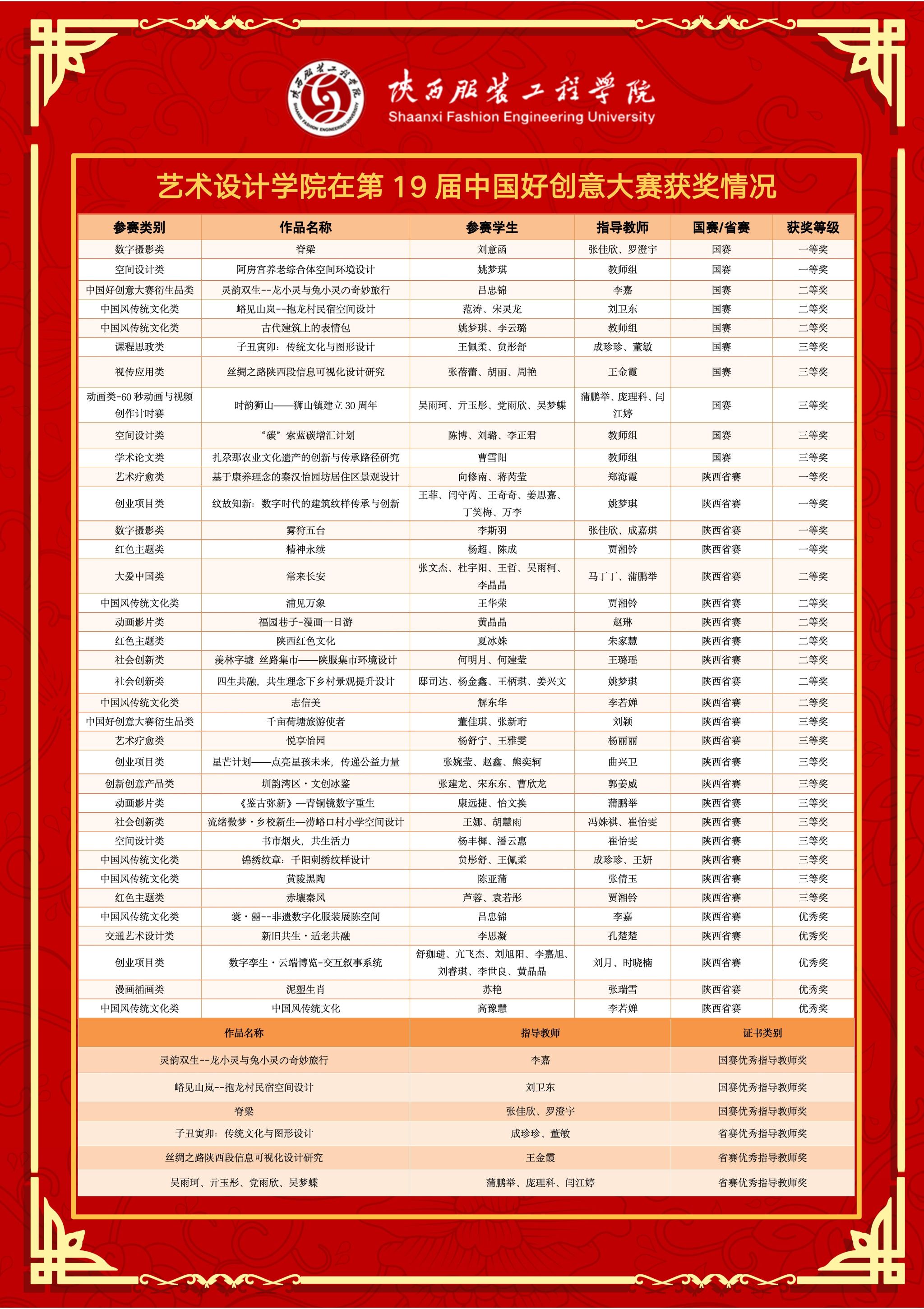 艺术设计学院始终高度重视学生创新素养和实践能力的培养,将学科竞赛作为深化教学改革、提升人才培养质量的重要载体,持续构建专业化、体系化的创新实践平台。此次获得的36项大奖,是学院坚持高质量人才培养路径的重要成果,同时为学校打造特色鲜明的高水平应用型大学注入了坚实动能。