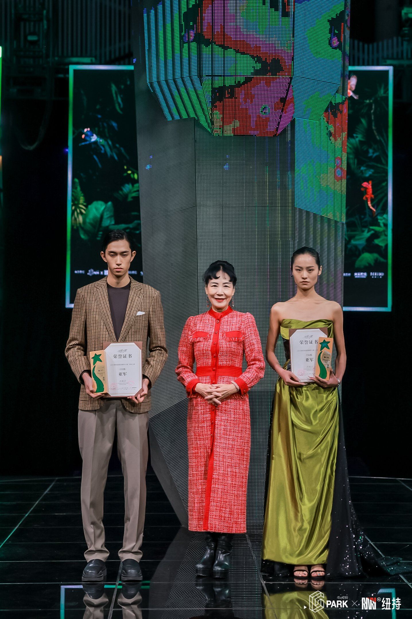 最终,张永珺琪凭借稳定的现场发挥、鲜明的个人风格与对主题的精准诠释,以全场高分锁定T台组冠军;曲洺熠则以从容大气的台风与出色的时尚表现力斩获亚军,多名学子凭借综合实力入选“十佳模特”,充分展现了我校表演专业的人才培养成效。