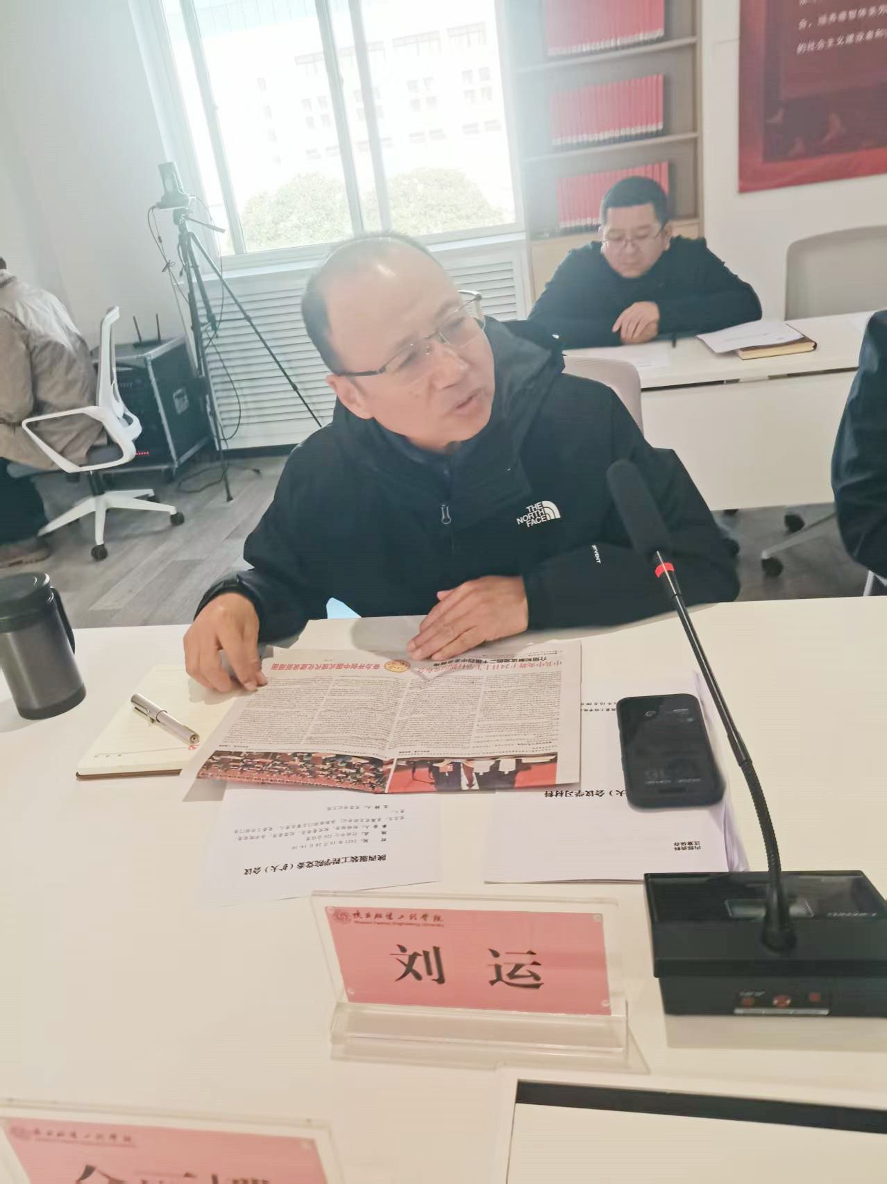 会议以观看视频形式全文学习党的二十届四中全会公报、学习传达习近平总书记在党外人士座谈会上的重要讲话精神,以及教育部党组扩大会议、陕西省委常委会扩大会议传达学习党的二十届四中全会精神专题会议精神,参会人员结合学校实际和分管工作,就学习宣传贯彻党的二十届四中全会精神进行研讨交流,党委副书记、纪委书记刘继兵,副校长刘运作重点发言,党委书记王岗作小结。