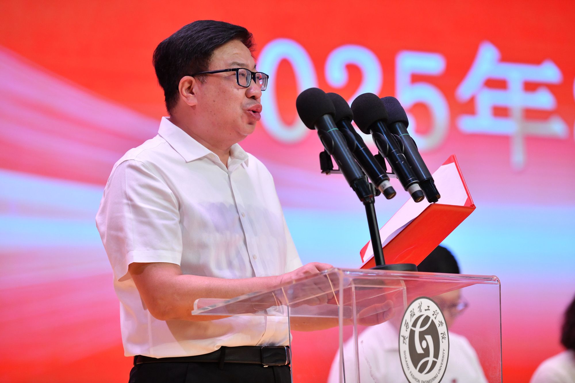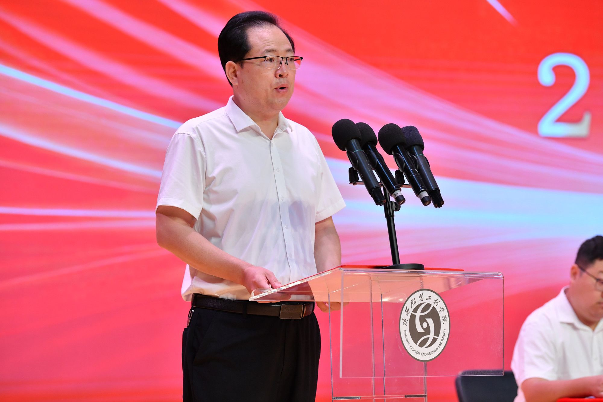 王岗在动员讲话中,代表校董事会、校委会和党委会对来自全国各地的新生表示热烈的欢迎!他指出,从这一刻起,“陕服学子”便成为2025级新生们光荣的身份标签。“今日我以陕服为荣,明日陕服以我为傲”,这不仅是一句口号,更是代代陕服人薪火相传的精神追求。希望同学们在这片沃土上绽放光彩。