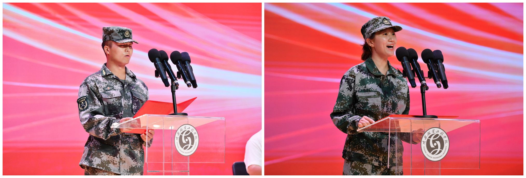 教官代表康超和新生代表王艺燃分别做了发言。他们一致表示将秉承“锲而不舍、玉汝于成”的校训,发扬艰苦创业、锲而不舍、迎难而上和追求卓越的陕服精神,按照国防教育实施方案和既定的目标任务,加强训练管理,以严明的纪律、科学的训练和丰富的活动内容,圆满完成学习训练任务。