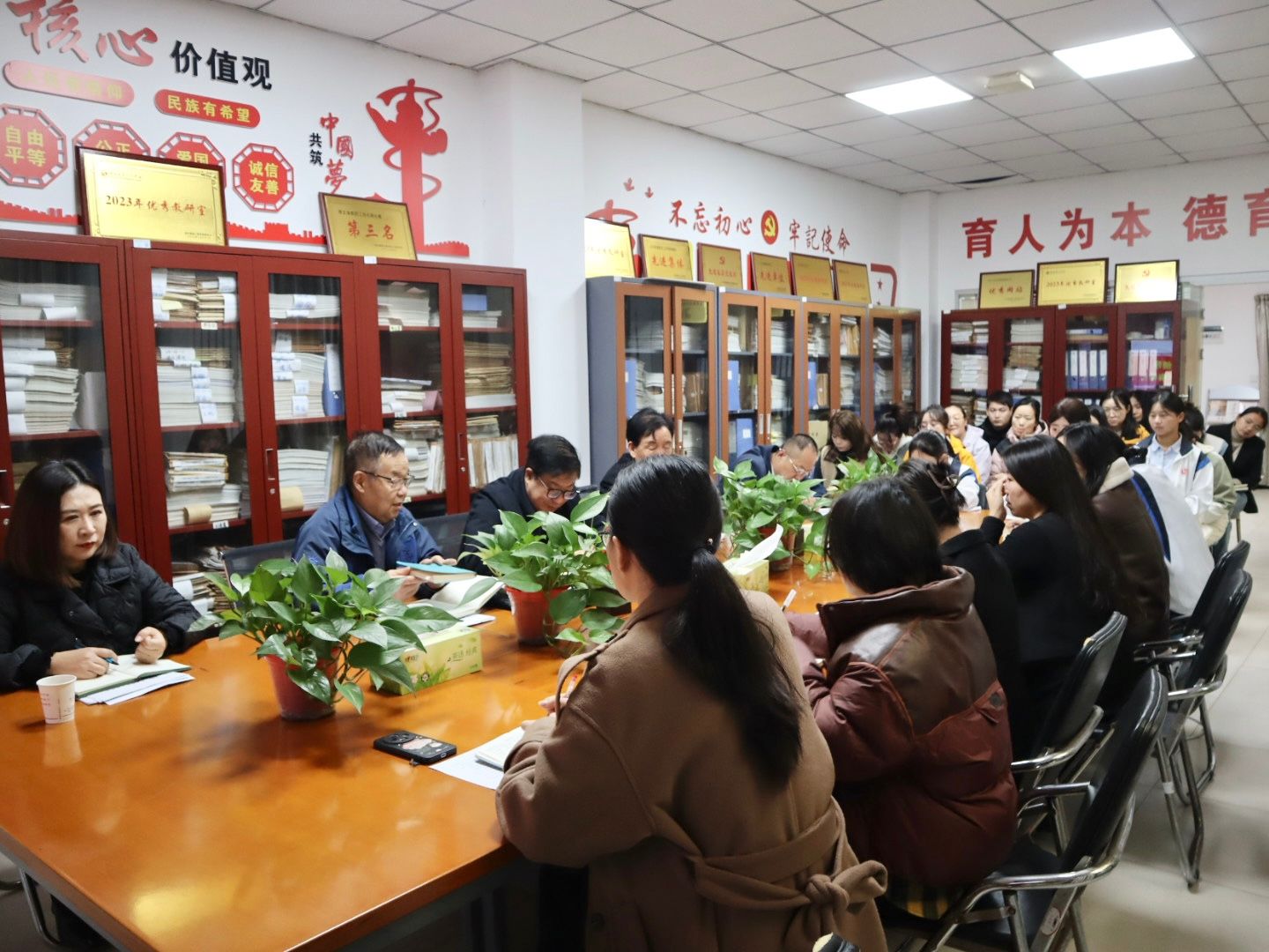 为推动马克思主义学院内涵式发展,全面了解思政课改革建设情况及“到延安去”•三秦学子圣地行活动的开展情况,10月23日上午9点,校长姜寿山、党委书记王岗到马克思主义学院调研指导。马克思主义学院院长颜毓洁、副院长朱旭、教师及学生代表参加会议。